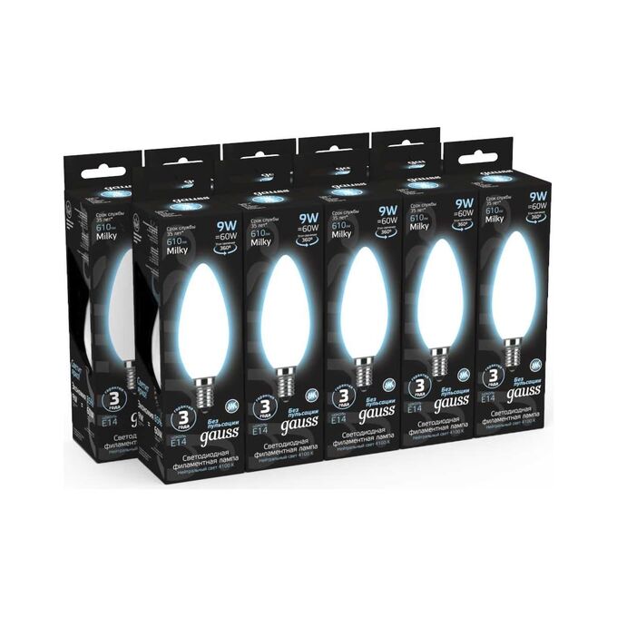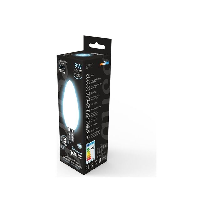 Лампа GAUSS E14 103201209 свеча 9Вт упаковка 10 шт.