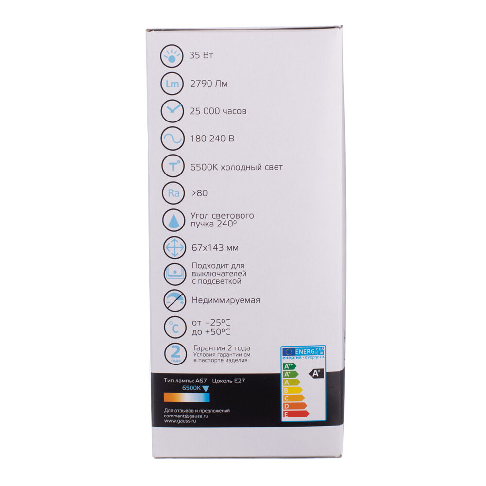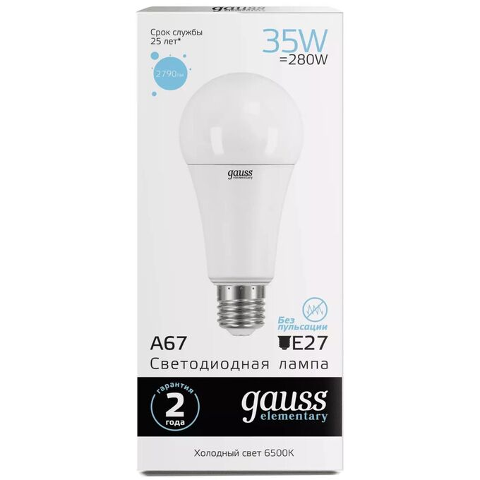 Лампа Gauss LED Elementary A67 35W E27 2790lm 6500K SQ70235