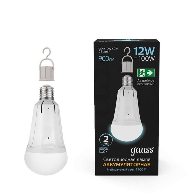 Преимущества Gauss A80 12W 900lm 4100K Е27 с Li-Ion аккумулятором LED 102002212