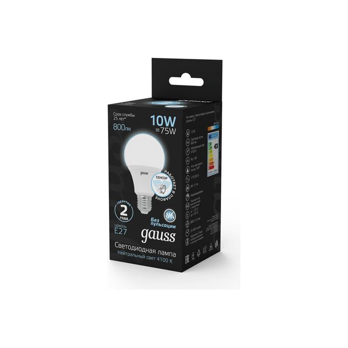 Технические характеристики Gauss A60 10W 800lm 4100К E27 Сенсор LED 102502210-M