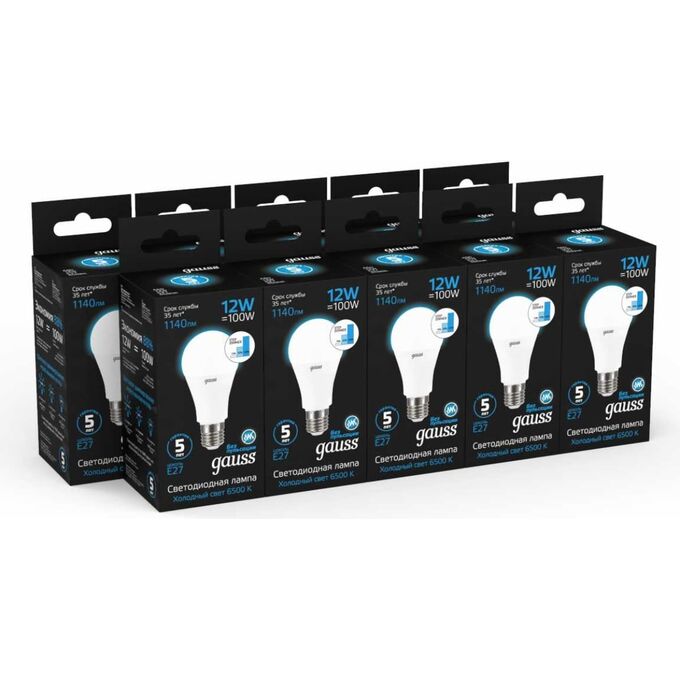 Лампа светодиодная Gauss 102502312-S 12Вт E27 груша 220B 6500K св.свечения белый холодный уп/10шт