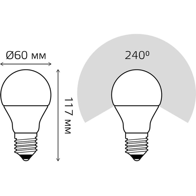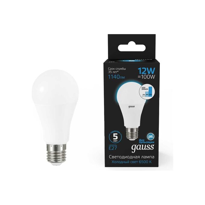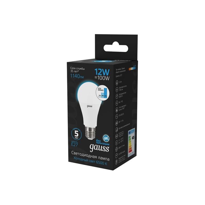 Технические характеристики Gauss A60 12W 1140lm 6500K Е27 шаговое диммирование LED 102502312-S