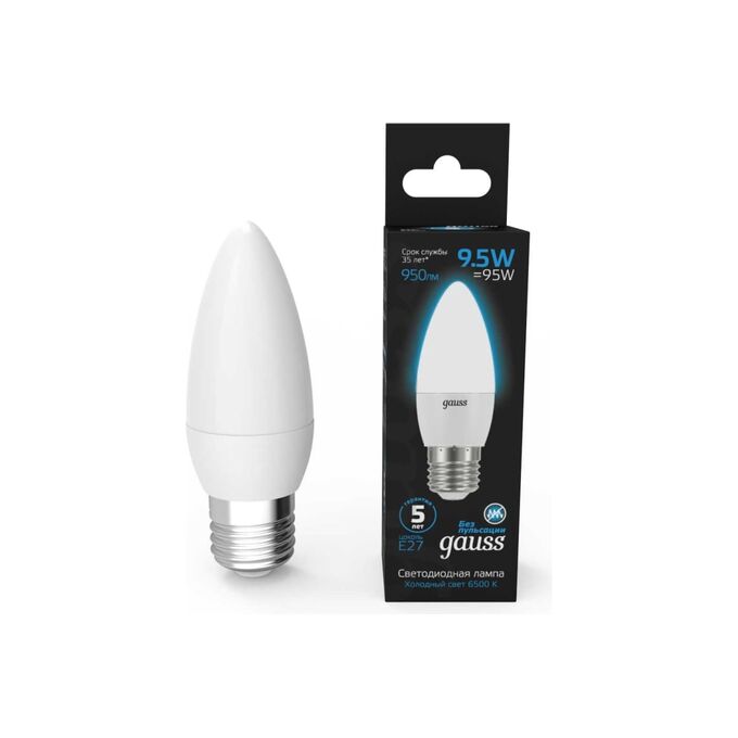 Лампа светодиодная Gauss 103102310 9.5Вт цок.E27 свеча 220B 6500K св.свечения белый холодный уп/10шт