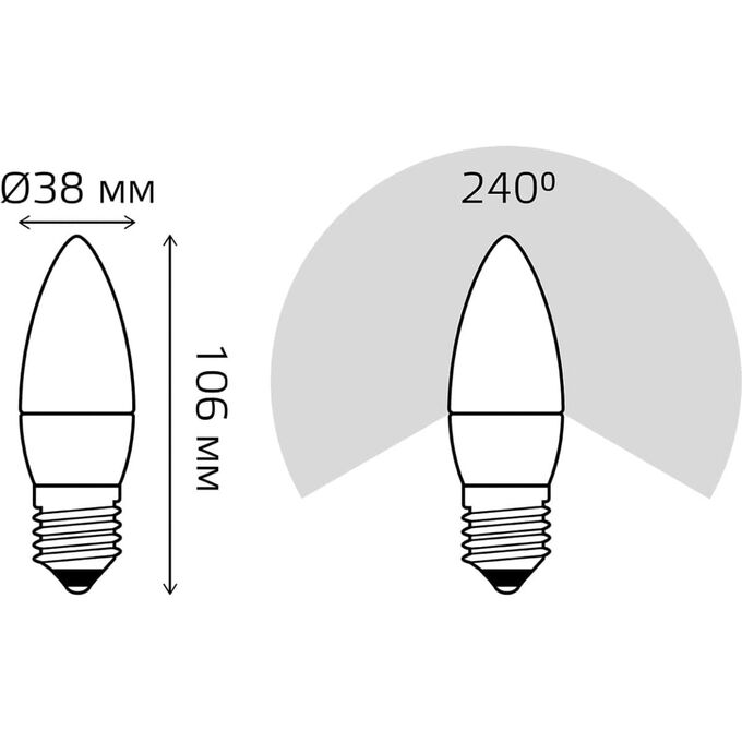 Технические характеристики Gauss Свеча 9.5W 950lm 6500К E27 LED 103102310