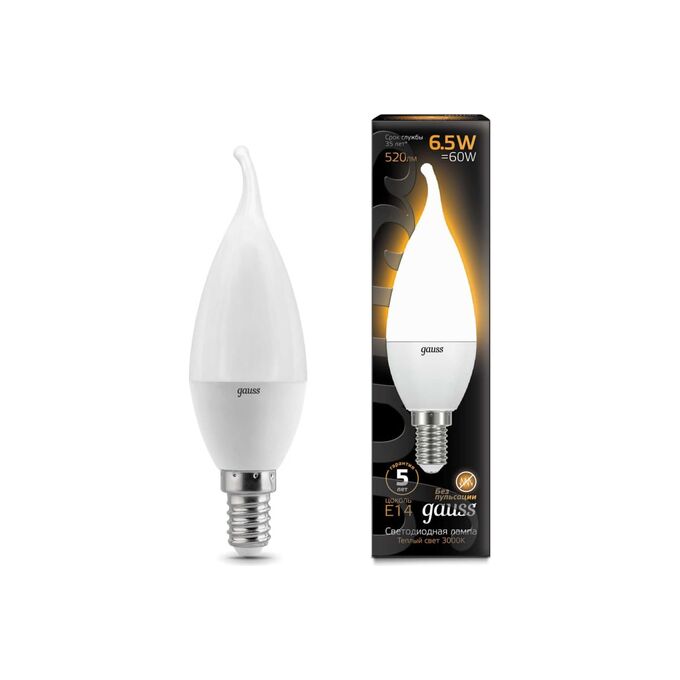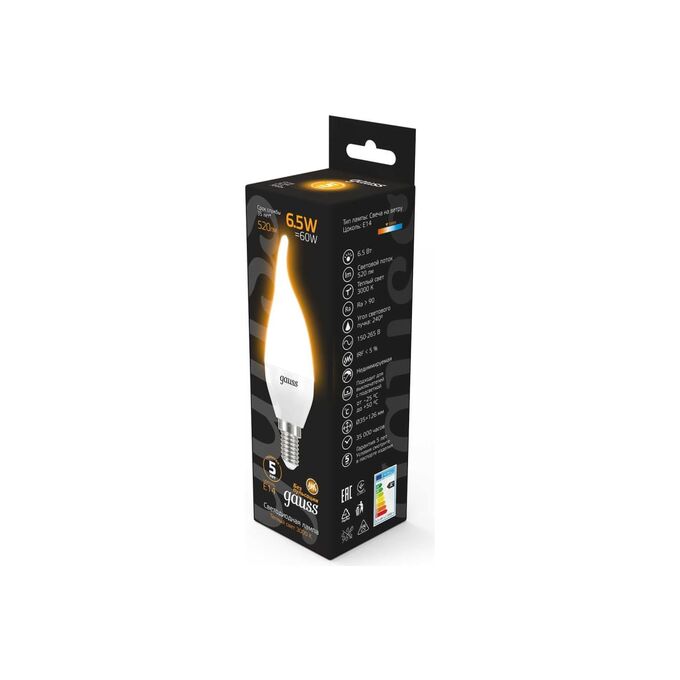 Технические характеристики Gauss LED Свеча на ветру E14 6.5W 520lm 3000K 104101107