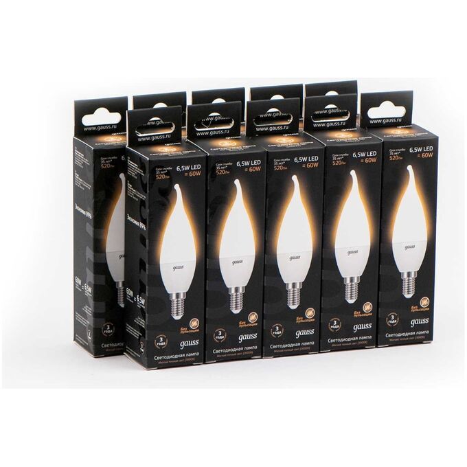 Лампа светодиодная Gauss 104101107 6.5Вт цок.E14 свеча 220B 3000K св.свечения белый теплый уп/10шт