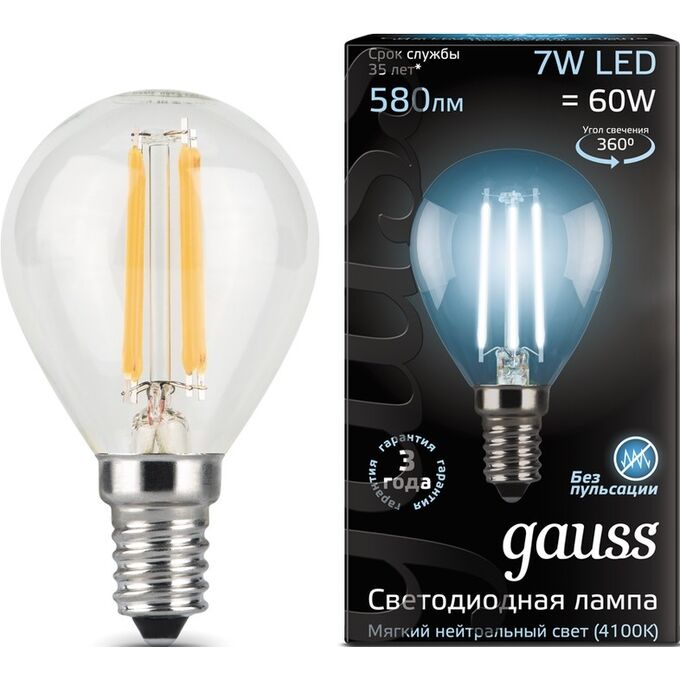 Лампа светодиодная Gauss 105801207 Filament Шар E14 7Вт 4100К