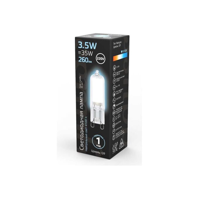 Технические характеристики Gauss LED G9 AC220-240V 3.5W 260lm 4100K Glass 107809203