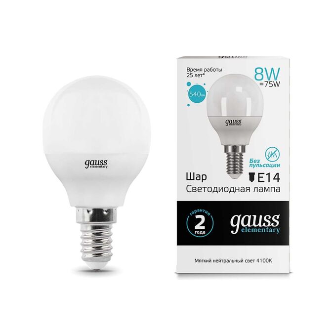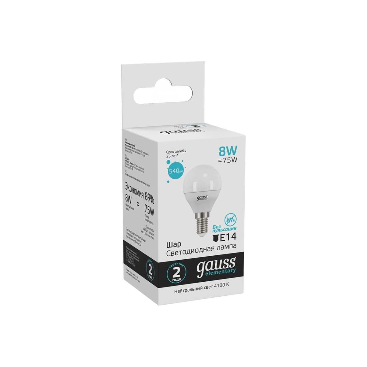 Технические характеристики Gauss LED Elementary Globe 8W E14 4100K 53128