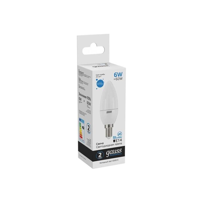 Технические характеристики Gauss LED Elementary Свеча 6W E14 470lm 6500K 33136
