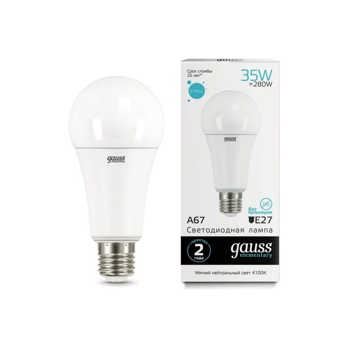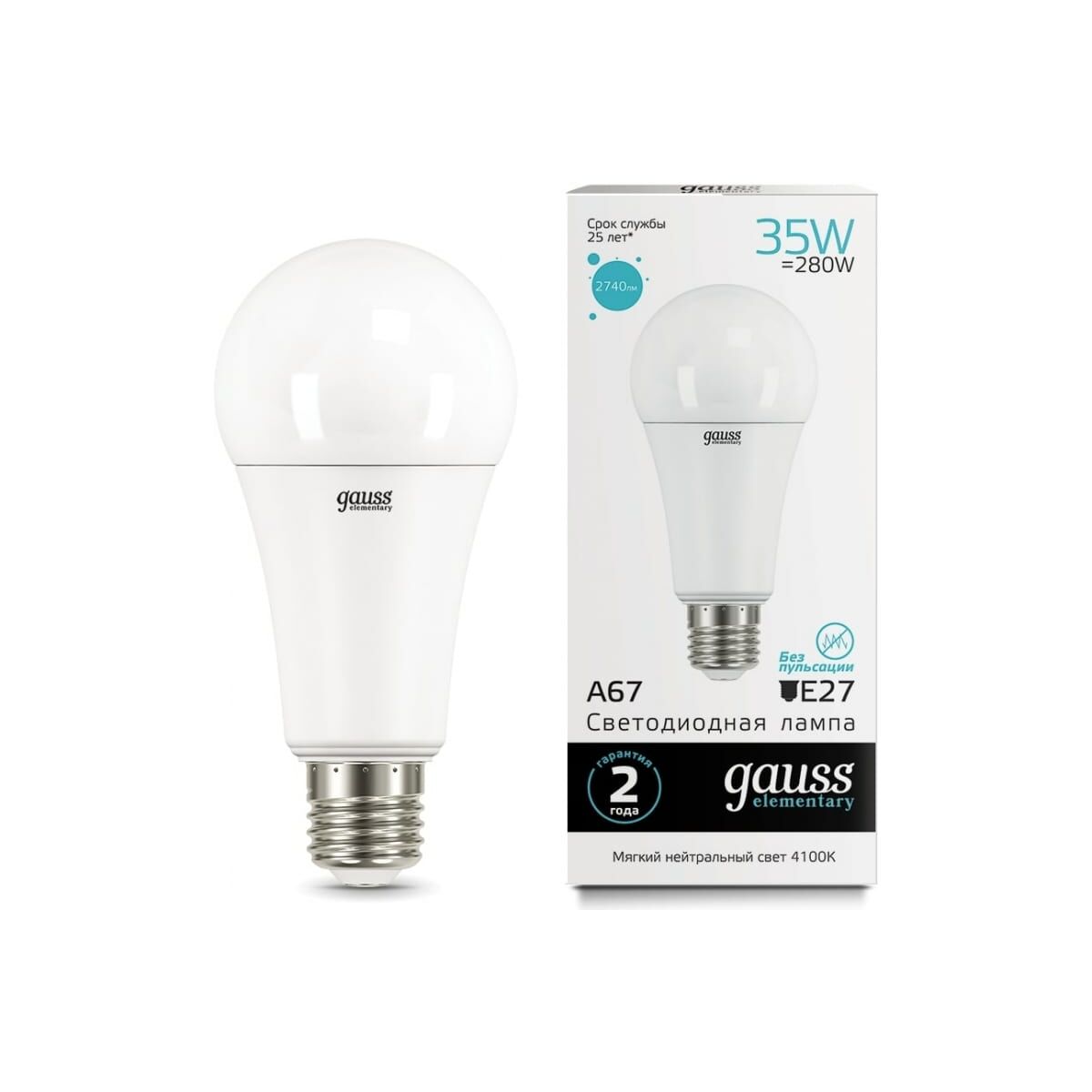 Лампа светодиодная Gauss Elementary 70225 A67 35Вт E27 груша 220B св.свечения белый нейтральный уп/10шт