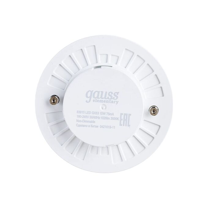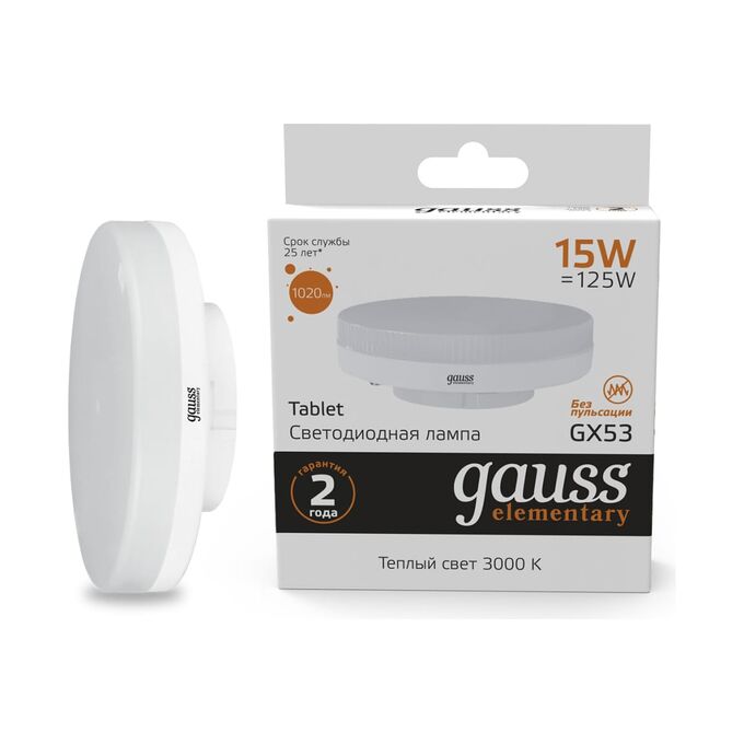 Лампа светодиодная Gauss Elementary GX53 83815 15Вт GX53 таблетка 220B 3000K св.свечения белый теплый уп/1шт