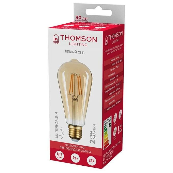 Лампа светодиодная Hiper Thomson Filament ST64 9W 855Lm E27 2400K Gold