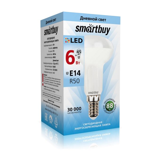Лампа светодиодная SMARTBUY R50 6Вт 220V 4000K E14 (рефлекторная, нейтральный свет) (1/10/50)