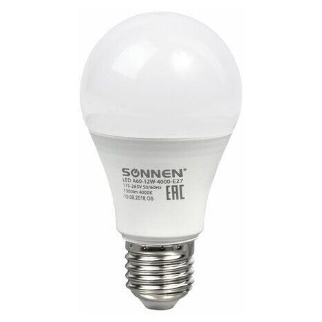 Лампа светодиодная Sonnen A60-12W-4000-E27 453698