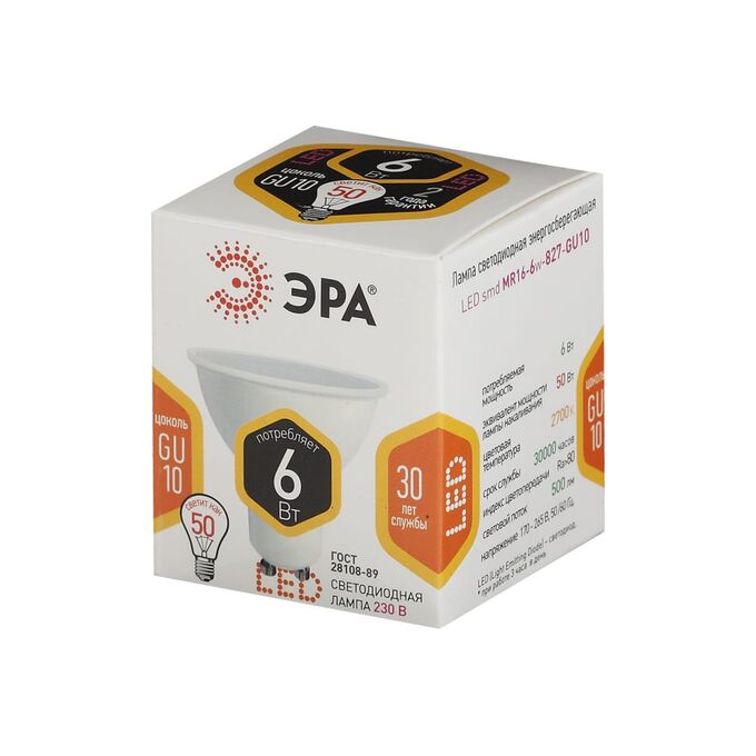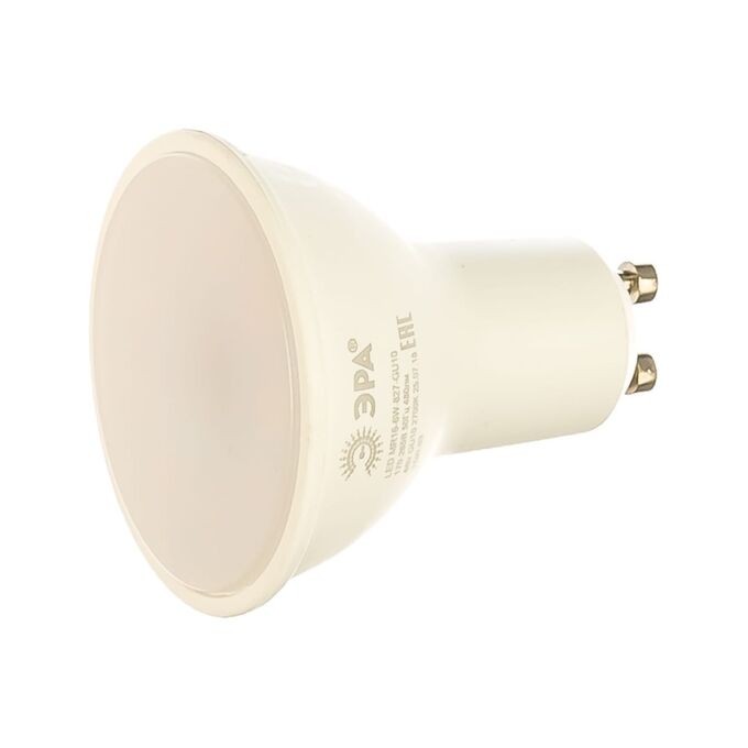 Светодиодная лампа ЭРА LED smd MR16-6w-827-GU10 Б0020543 создаёт яркое ровное освещение и экономит до 90% электроэнергии по сравнению с лампой накаливания с аналогичным световым потоком. Светит теплым светом с жёлтым оттенком - такая цветовая температура эффективна для отдыха и уютной атмосферы в доме. Используется в потолочных, настенных, настольных светильниках, в люстрах и бра. Мгновенно включается и не нагревается.