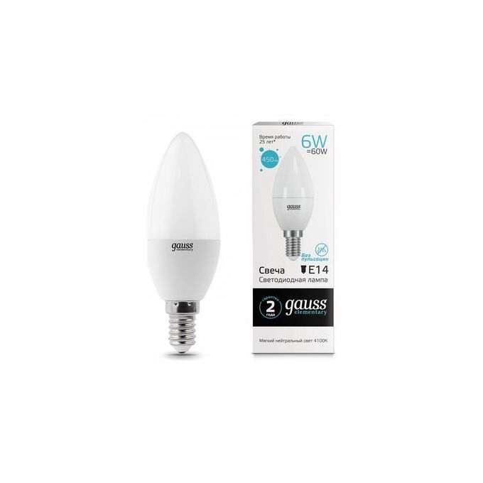 Лампочка Gauss 33126 Elementary Свеча 6W