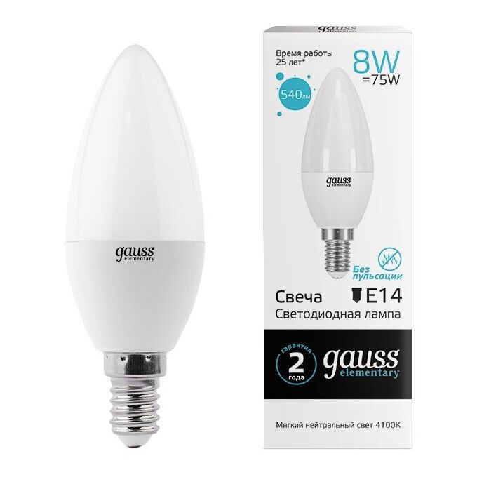 Лампочка Gauss 33128 Elementary Свеча 8W