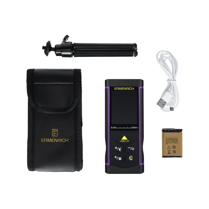Ermenrich LR200 – лазерная рулетка с цифровым видоискателем, которая позволит проводить замеры на удалении до 200 м. Прибор способен оценивать не только линейные расстояния, но и площадь, объемы и углы с минимальной погрешностью (±2 мм). Оптимизация процесса измерений на стройке, при ремонте или проектировании с такой рулеткой выходит на новый уровень.