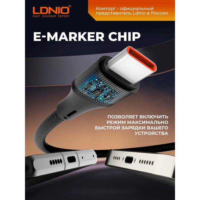 USB кабель PD: LDNIO LC631C-100W/ : Type-C--Type-C/ 1m/ 100W High power/ E-marker chip/серый