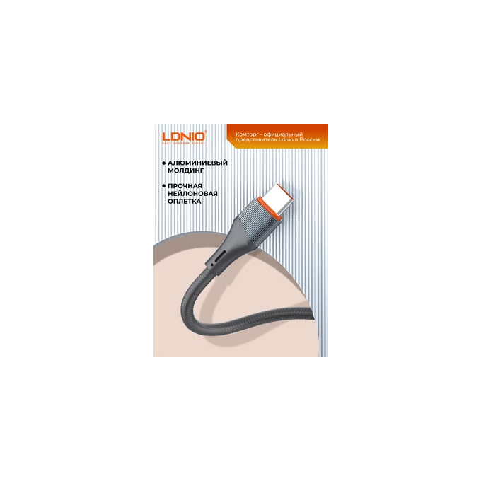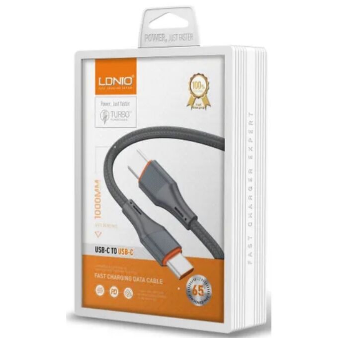 LDNIO LC632C/ USB кабель PD: Type-C--Type-C/ 2m/ 65W/ медь/ Нейлоновая оплетка/ Gray
