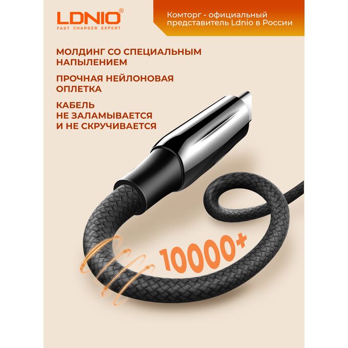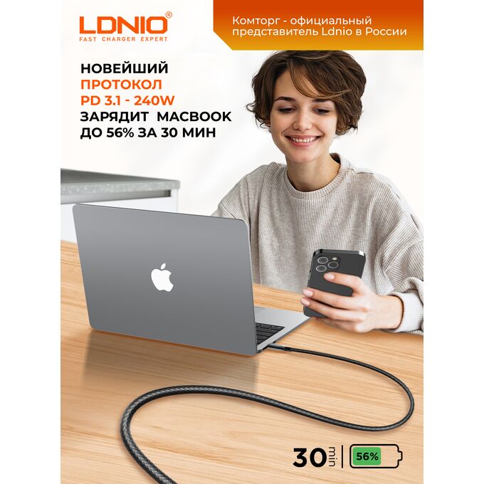 Кабель PD 3.1 для супербыстрой зарядки LDNIO LC921-240W/ : Type-C--Type-C/ 1m/ 240W High power/ E-marker chip/серый