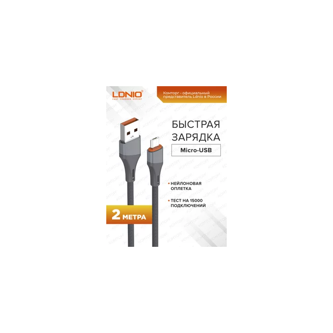 LDNIO LS632/ USB кабель Micro/ 2m/ 30W/ медь: 120 жил/ Нейлоновая оплетка/ Gray