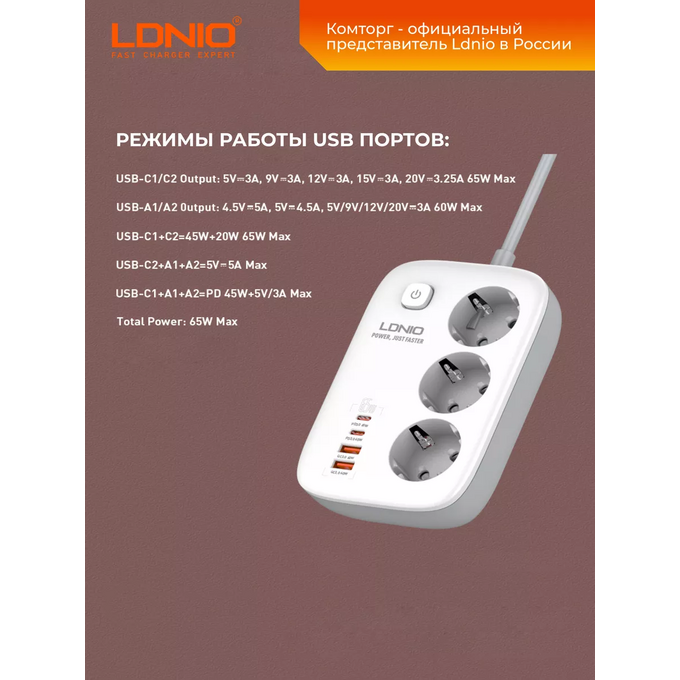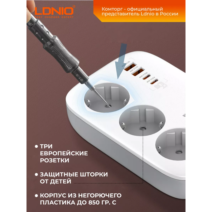 Совеременный сетевой фильтр со встроенной зарядкой для телефонов, планшета и других устройств выполнен по GaN технологии! Удлинитель LDNIO SE3436 с 3 евро розетками и 4 USB портами два из которых Type-C с защитой от перегрузки, короткого замыкания и перегрева. Увеличенная максимальная мощность подключаемых устройств – 3250 Вт. Удлинитель c проводом 2 метра и единый сенсорный выключатель. Поддержка быстрой зарядки и протоколов QC 4+ 65W Max. Корпус выполнен из негорючего пластика с температурой плавления 850 градусов. Фильтр имеет специальные нескользящие ножки, защитные шторки для безопасности детей.
