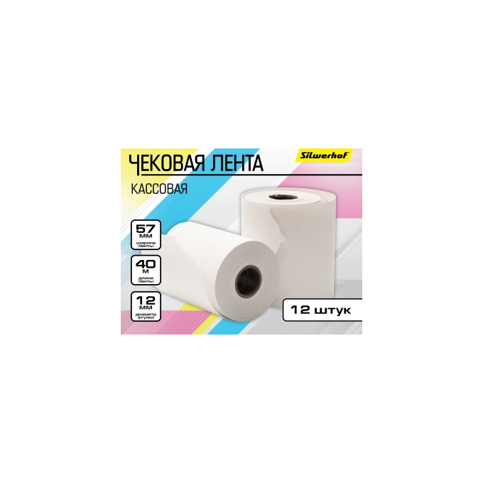 Лента чековая Silwerhof 57мм 40м 12mm термобумага
