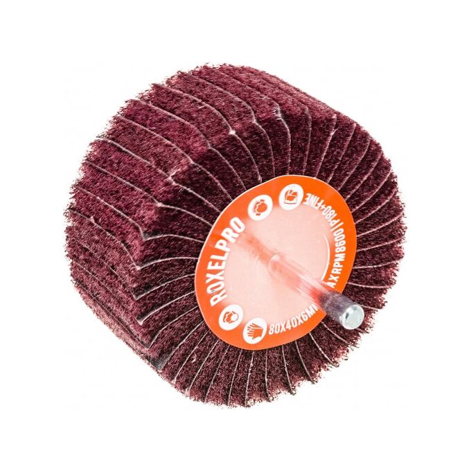 Лепестковая комбинированная щётка RoxelPro Roxtop 135859 на шпинделе 80х40х6 мм, Р180+Fine, 1 шт