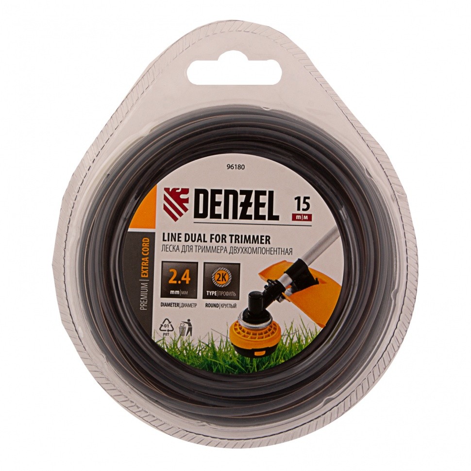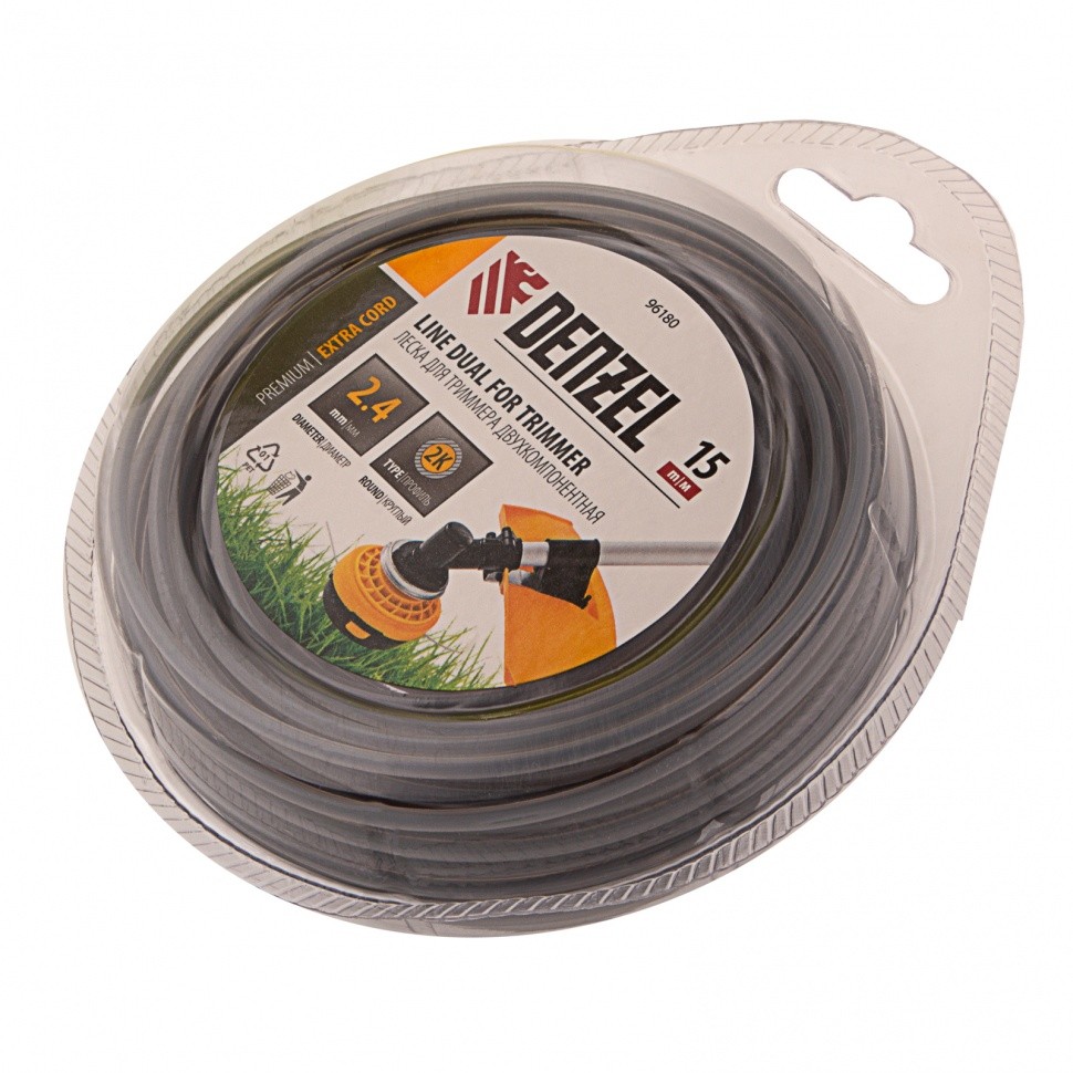 Леска для триммера DENZEL 96180 двухкомпонентная круглая 2,4мм х 15м, Extra cord