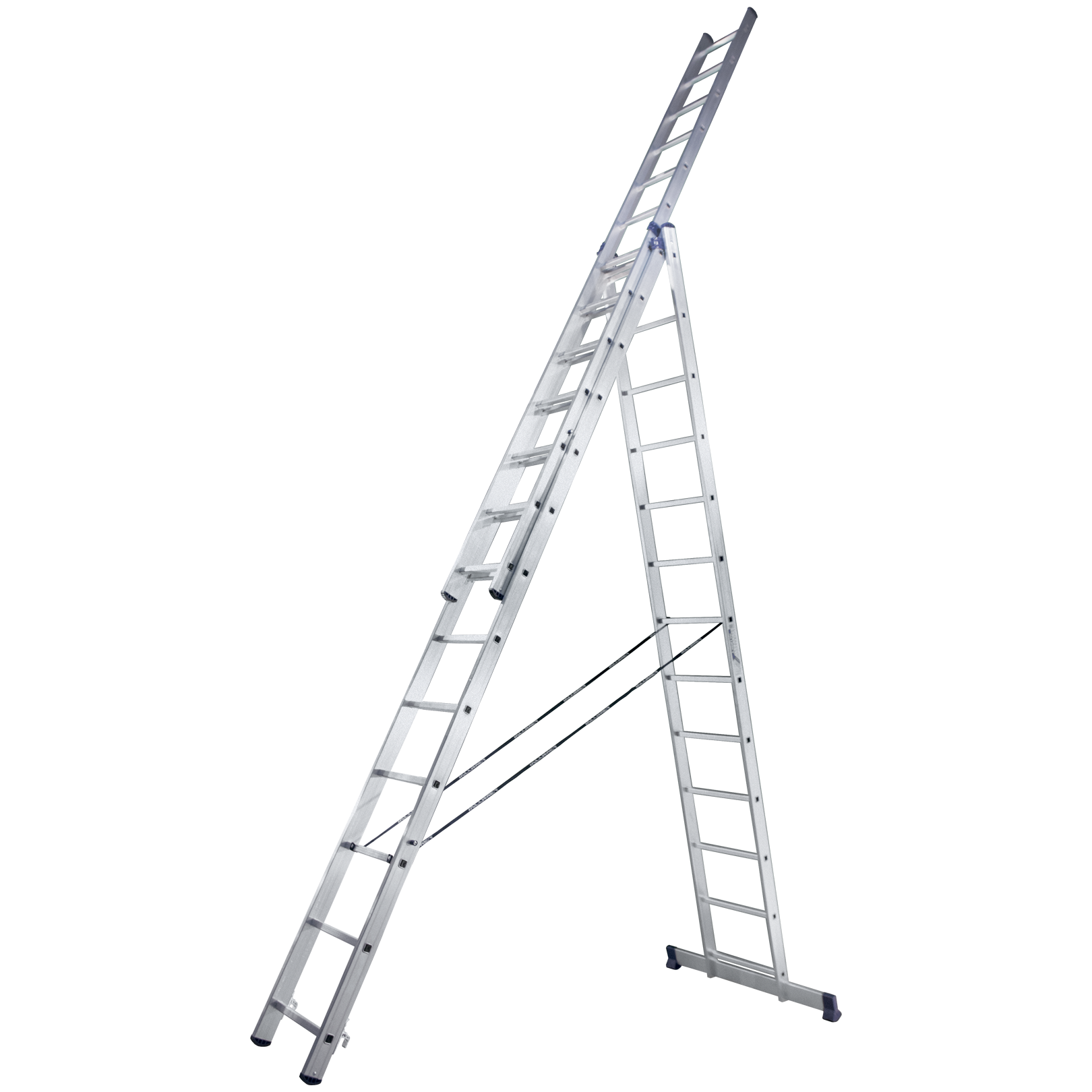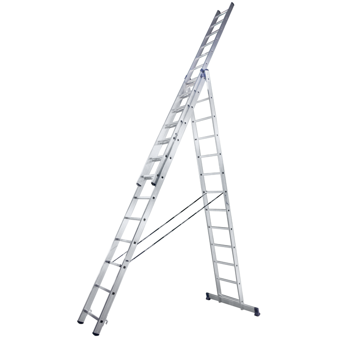 Трехсекционная универсальная алюминиевая лестница Алюмет Серия H3 5314 - это многофункциональное приспособление для разных работ. Может использоваться в приставном варианте, как двухсекционная лестница, а так же в качестве стремянки и в виде раздвижной, телескопической конструкции. Комплектуется страховочными ремешками, что повышает безопасность работ. Двухкомпонентные наконечники, которыми оснащены опоры, защищают лестницу от скольжения во время работы.
