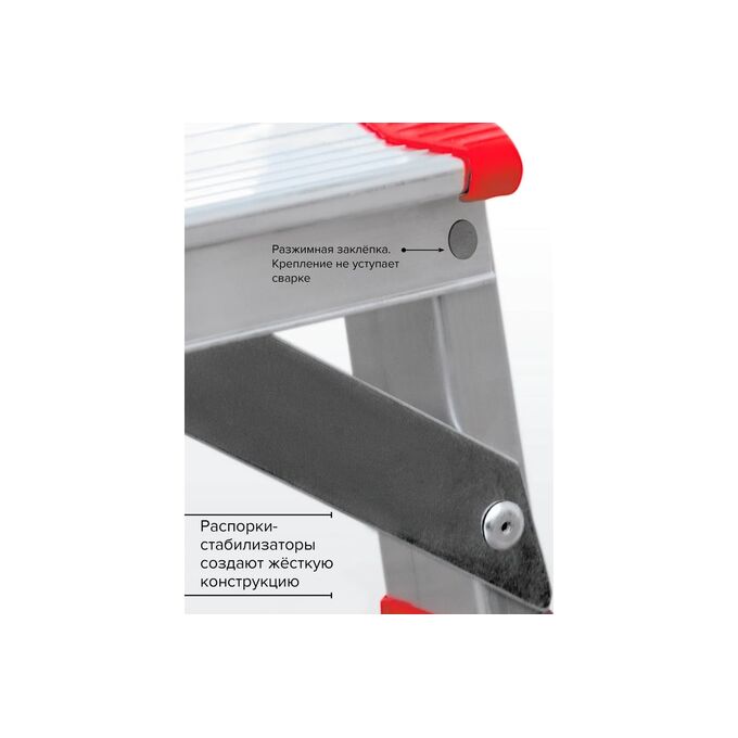Прочное крепление ступеней к боковинам шестью заклёпками для более высокой устойчивости конструкции