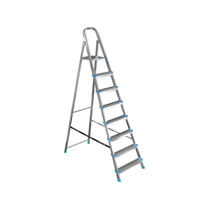 Стальная стремянка ЯРУС 8 ступеней 122208 подходит для строительных, отделочных или монтажных работ.