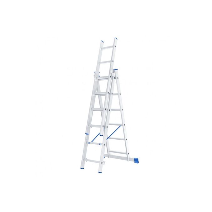 Алюминиевая трехсекционная лестница СИБРТЕХ 3х6 ступеней 97816 применяется для высотных работ, как покраска фасада дома, монтирование электроосветительных приборов, работа в саду и др.