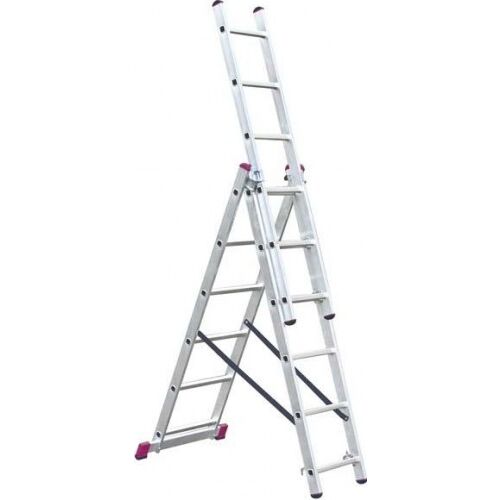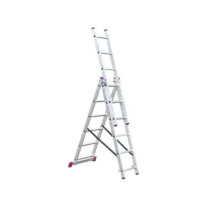 Универсальная алюминиевая лестница 3х6 Krause Corda 010360 - многофункциональная трехсекционная лестница для различных ремонтных и бытовых работ. Применяется в четырех различных положениях: как обычная стремянка и стремянка с выдвижной секцией, как приставная и выдвижная лестница. Изделие выполнено из алюминиевого профиля с усилением в нагруженных местах, оснащена крепежными элементами и ступенями из легированного алюминия - для большей надежности. Нескользящие, полностью профилированные перекладины со всех сторон. Стальные, оцинкованные направляющие профили позволяют легко раздвигать лестницу. Части лестницы могут использоваться отдельно. Нескользящие опорные заглушки боковин и насадки траверсы. Безопасность эксплуатации и транспортировки обеспечивается крюками-защелками.