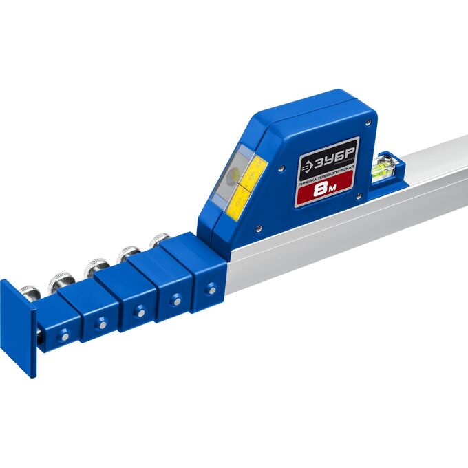 Выполняет функции рулетки, линейки и уровня. Наличие встроенного уровня с мишенью и горизонтальной ампулы позволяет использовать телескопическую линейку для проверки горизонтальности и вертикальности конструкций.