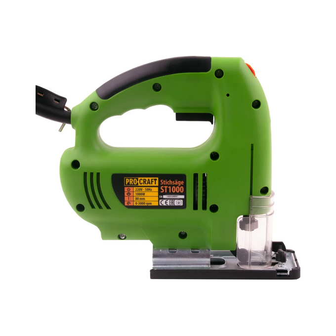 Электрический лобзик ST-1000 - мощный и надежный инструмент, предназначенный для резки различных материалов по прямым и криволинейным траекториям. С его помощью можно легко и быстро обрабатывать дерево, пластик и металл. Одной из ключевых особенностей лобзика является бесщеточный двигатель, обеспечивающий высокую мощность и долговечность инструмента. Лобзик оснащен регулируемой частотой хода, что позволяет настроить инструмент под конкретные задачи. Маятниковый и пылеотсасывающий патрубки обеспечивают высокую точность и безопасность при работе с инструментом. Быстрозажимное крепление пилки позволяет быстро и легко менять пильные полотна, а возможность подключения пылесоса снижает концентрацию пыли и улучшает условия работы. Защитный щиток предотвращает попадание искр и стружки в глаза и на кожу.