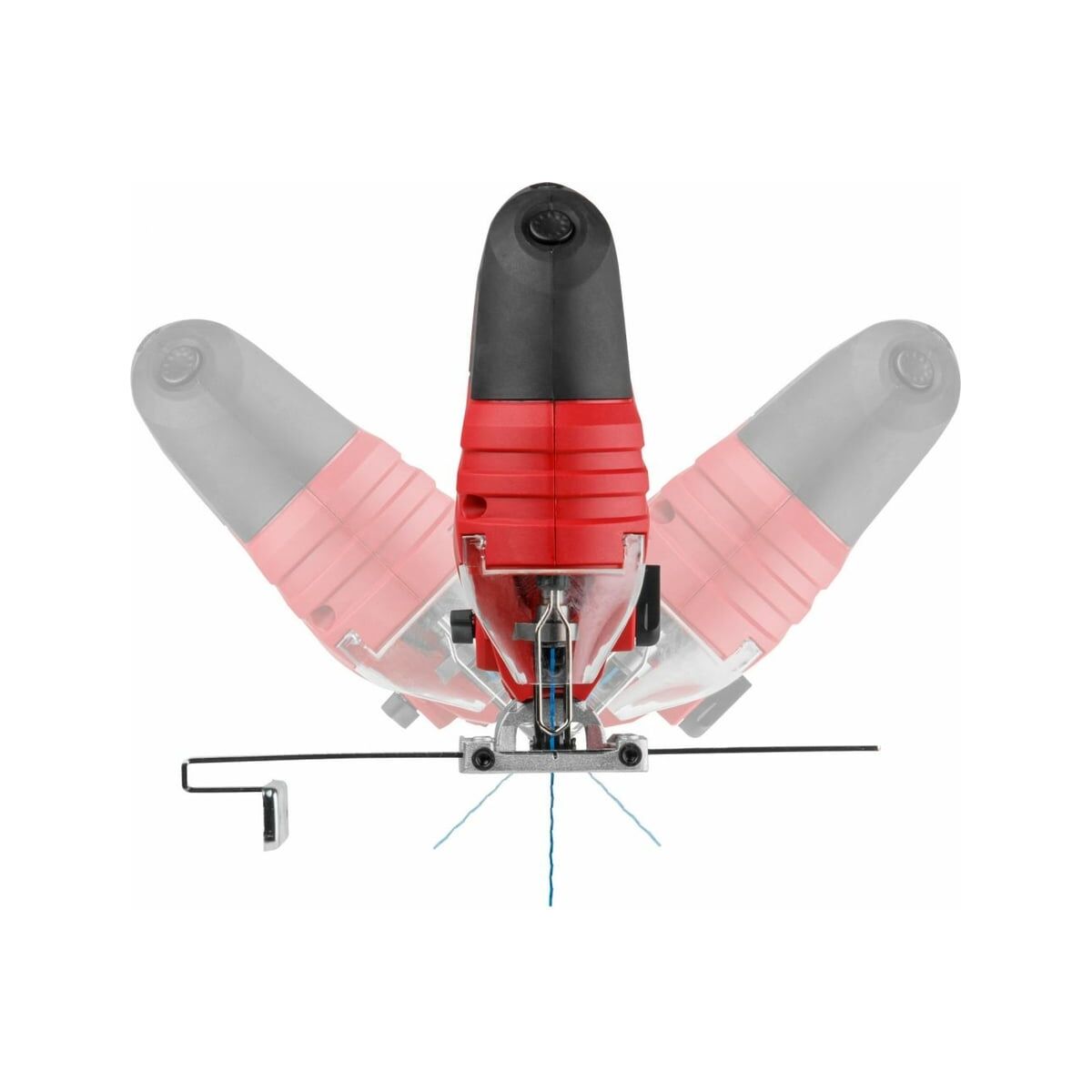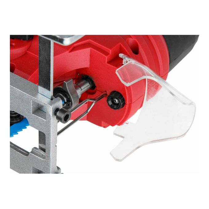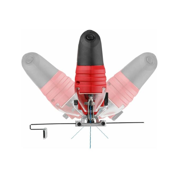 Предусмотрен быстрозажимной патрон, наличие маятникового движения с направляющим роликом, позволяет производить быстрые и при этом ровные пропилы.