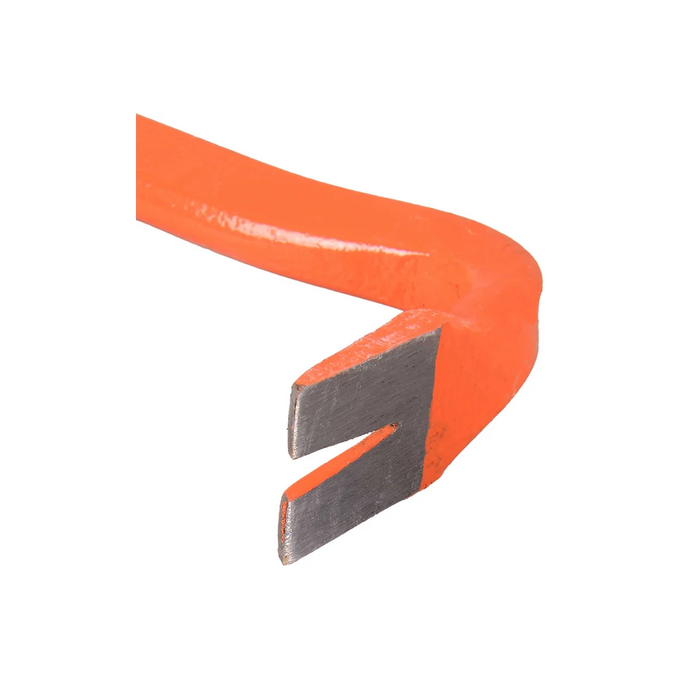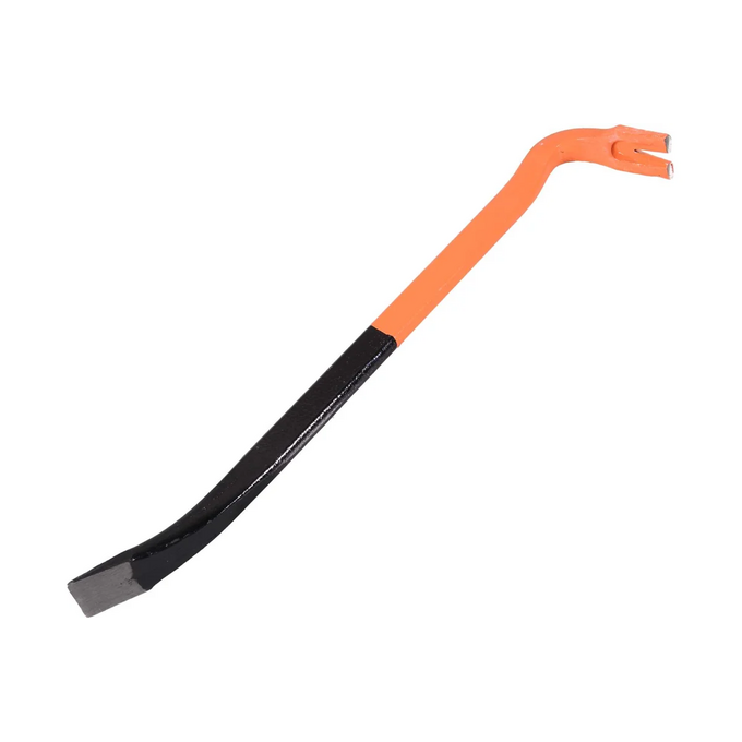 Лом-гвоздодёр кованый 450 мм Вихрь может использоваться для различных задач, таких как демонтаж деревянных конструкций, выдергивание гвоздей, а также выполнение других работ, требующих применения силы. Он состоит из изогнутого стального прута с короткой частью, расплющенной и прорезанной посередине. Эта прорезь служит для захвата гвоздей и других метизов со шляпкой. Изготовлен методом ковки, что гарантирует максимальную стойкость к механическим повреждениям и износу. Длина лома составляет 450 мм, а ширина – 22 мм. Такие параметры позволяют эффективно применять силу рычага в работе.
