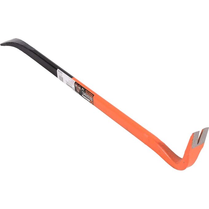 Лом-гвоздодёр кованый 600 мм Вихрь может использоваться для различных задач, таких как демонтаж деревянных конструкций, выдергивание гвоздей, а также выполнение других работ, требующих применения силы. Он состоит из изогнутого стального прута с короткой частью, расплющенной и прорезанной посередине. Эта прорезь служит для захвата гвоздей и других метизов со шляпкой. Изготовлен методом ковки, что гарантирует максимальную стойкость к механическим повреждениям и износу. Длина лома составляет 600 мм, а ширина – 25 мм. Такие параметры позволяют эффективно применять силу рычага в работе.