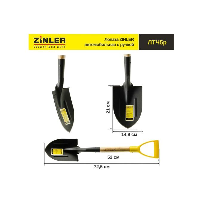 Лопата автомобильная ZINLER Z1.9H5G (ЛТЧ5р) с деревянным черенком и ручкой