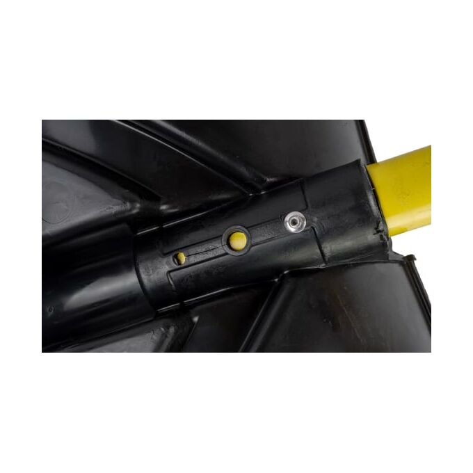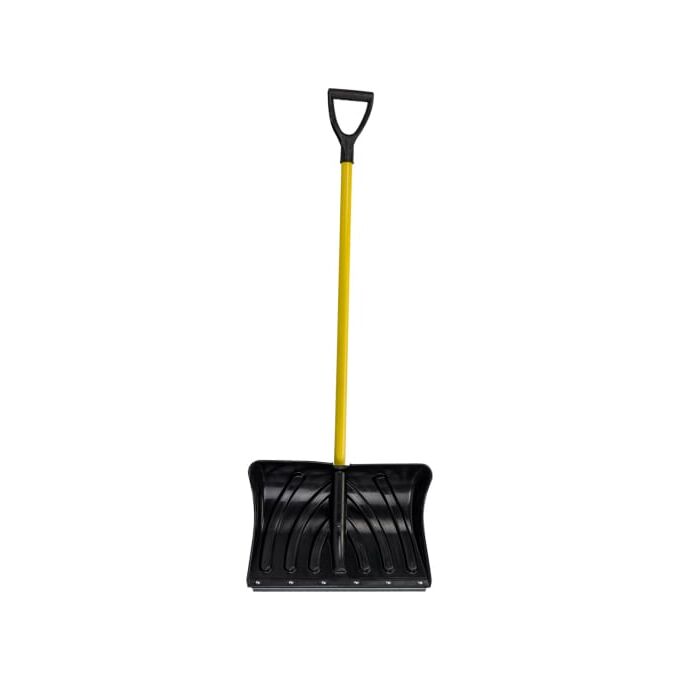 Пластмассовая лопата с оцинкованной планкой на заклепках, усиленная ребрами жесткости позволяет быстро убирать снег в большом количестве.