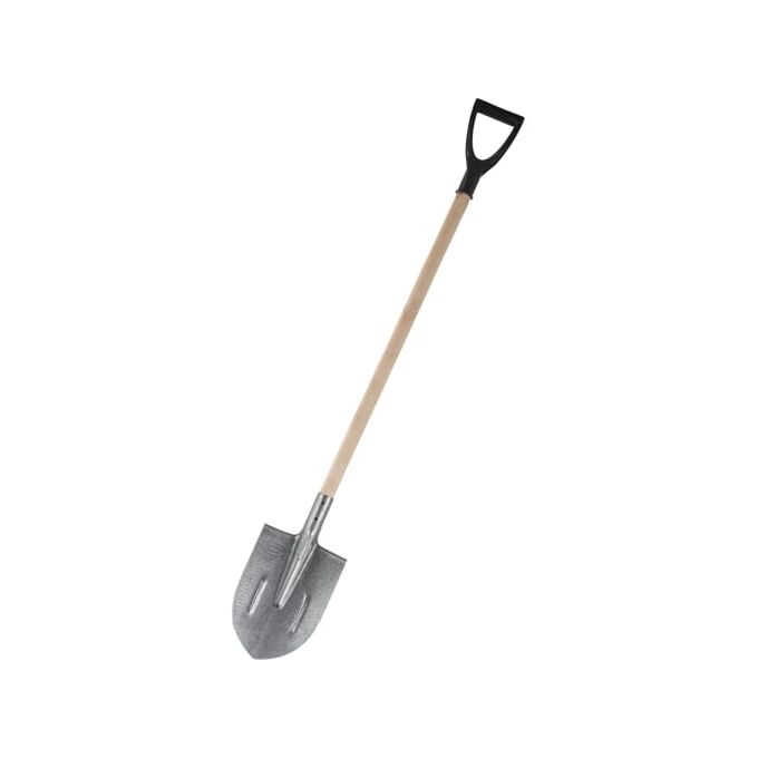 Штыковая лопата применяется для земельных работ. Рабочая часть имеет заостренную форму, которая обеспечивает легкое проникновение лопаты в грунт. Полотно выполнено из прочной рельсовой стали. Для удобства работы предусмотрен деревянный черенок с V-образной ручкой.