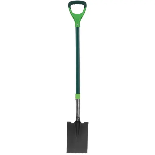Лопата (прямой штык, черенок из стекловолокна) VERTO 15G004 используется для садовых и строительных работ.