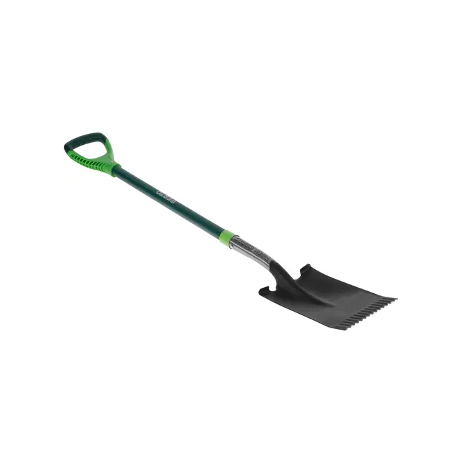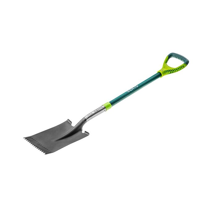 1.Зубчатая заостренная кромка VERTO 15G004 облегчает работу по обрезу корней и сложному грунту