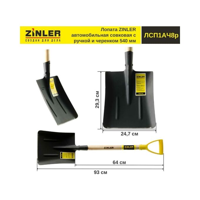 Лопата совковая ZINLER Z1.1АH8G (ЛСП1АЧ8р) автомобильная песочная тип 1 с деревянным черенком и ручкой
