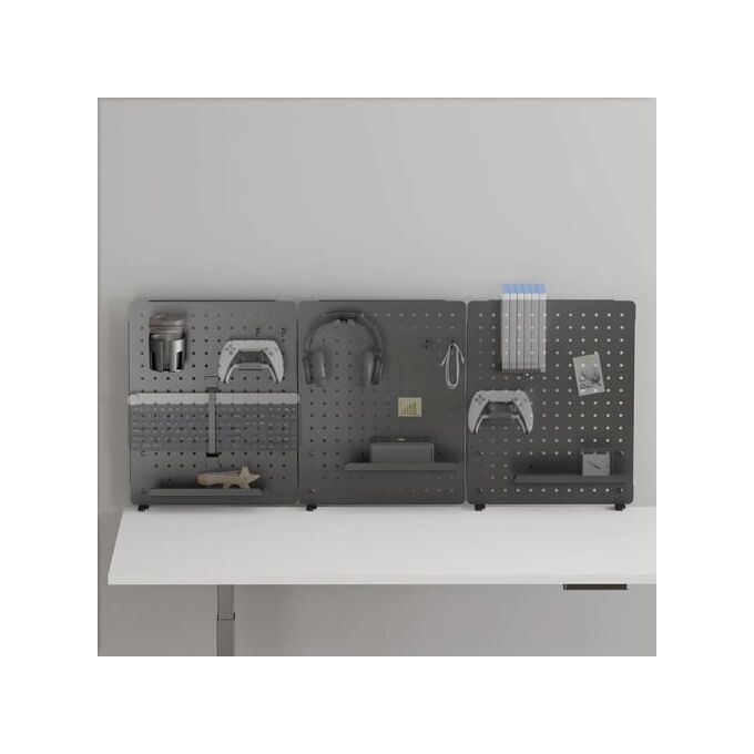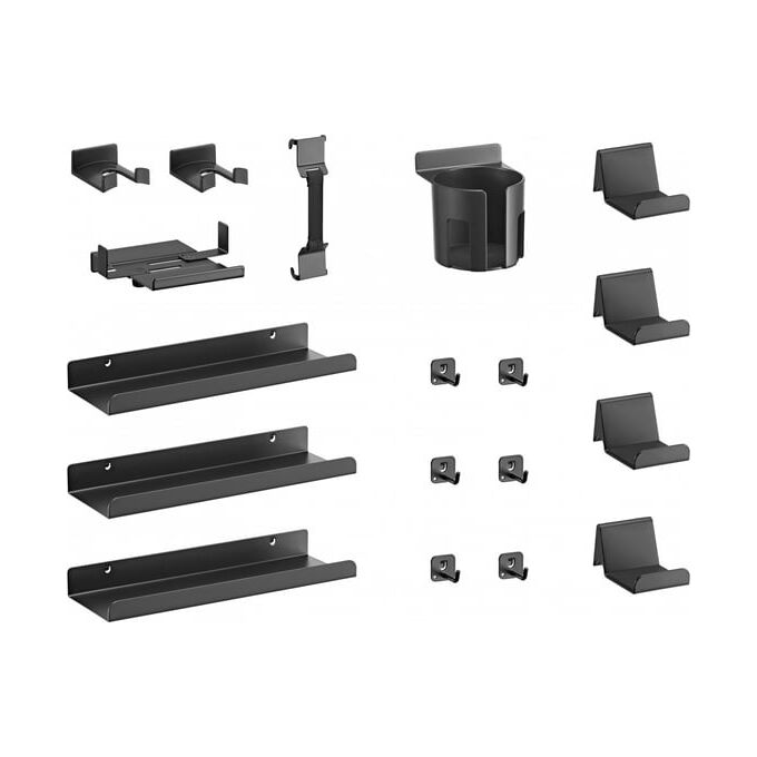 Набор аксессуаров CS-GMPB-SET1 станет отличным дополнением к перфорированным панелям Cactus. Большое количество различных крючков, удобный подстаканник, длинные полки для разных мелочей, отдельная раздвигаемая полочка для игр и универсальный крепёж для клавиатуры – всё это поможет в поддержании порядка на рабочем столе. Аксессуары легко и надёжно крепятся к панели, а стильный светло-серый цвет отлично подойдёт к любому интерьеру.