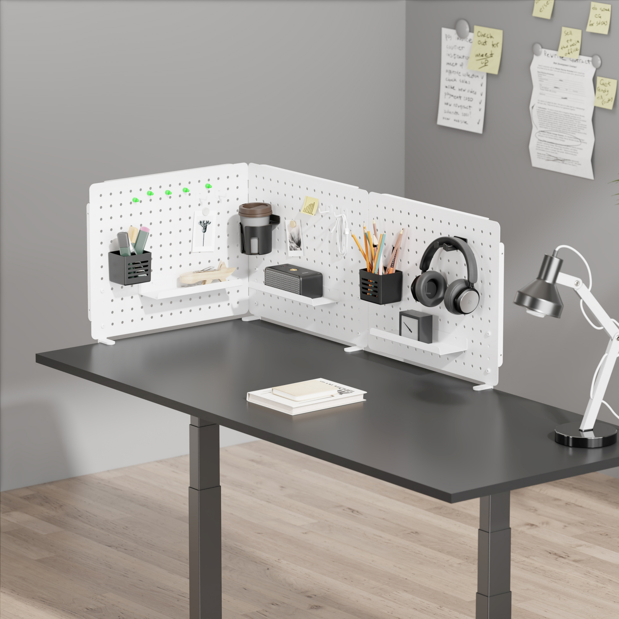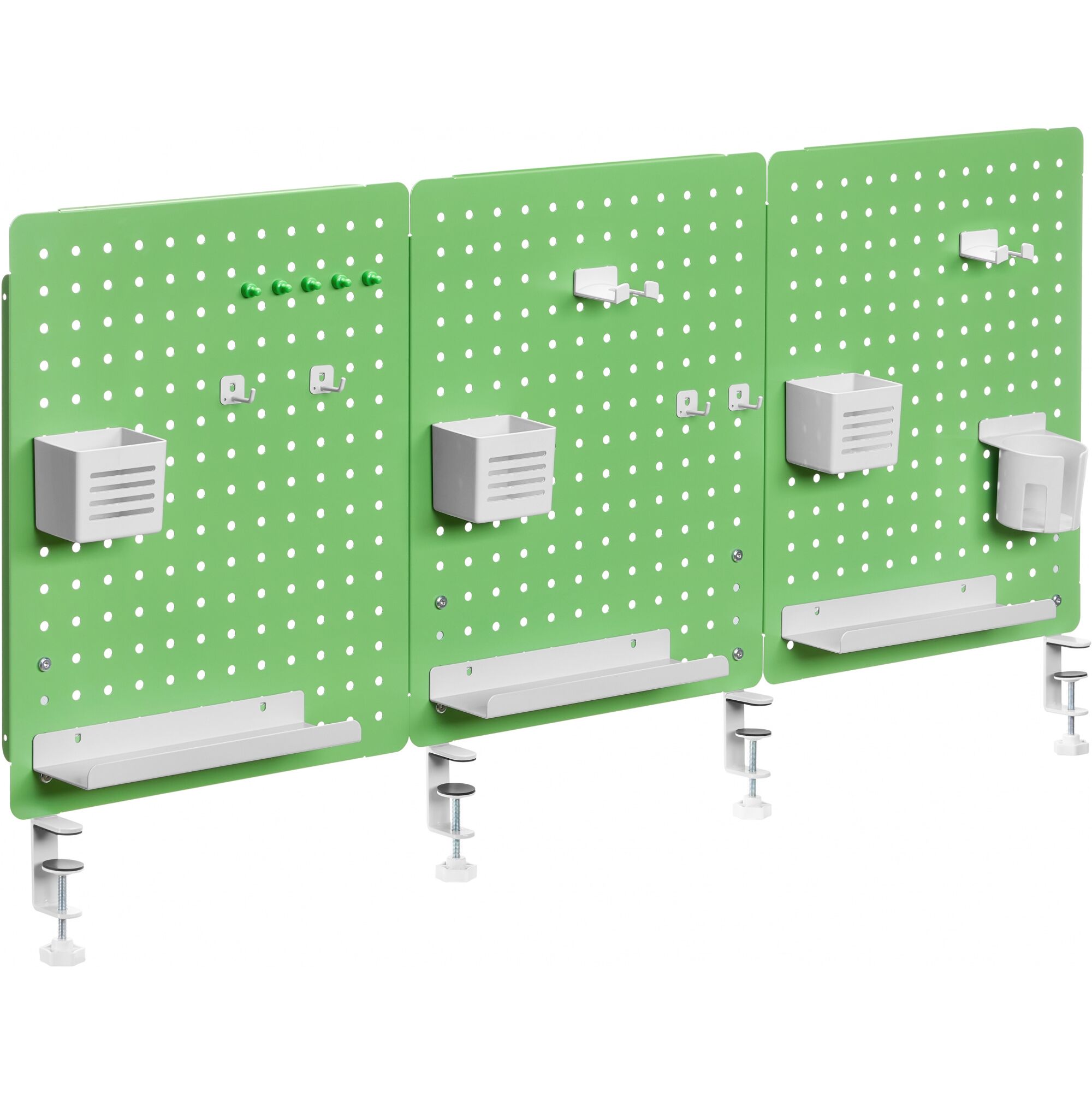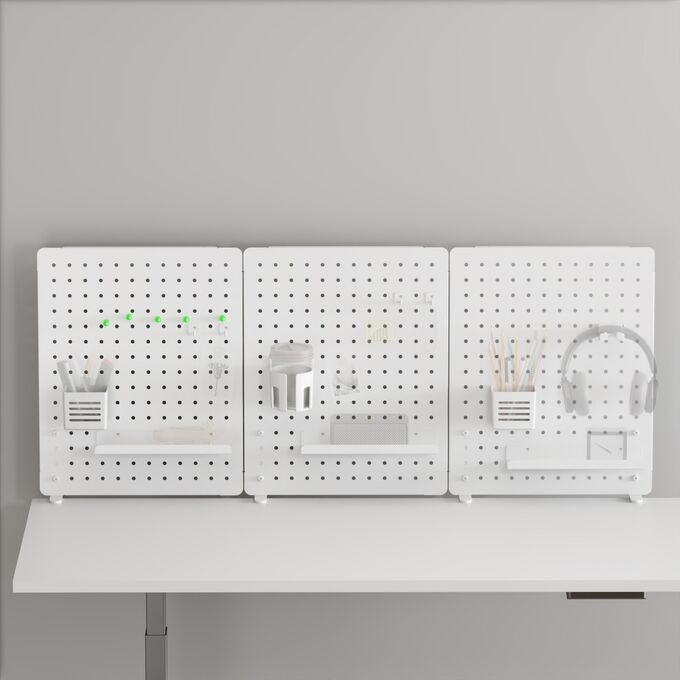 Набор аксессуаров CS-PB-SET2 станет отличным дополнением к перфорированным панелям Cactus. Подстаканник, крючки и магниты, просторные полочки и удобные стаканчики для разных мелочей – всё это позволит поддерживать порядок на рабочем месте в офисе или дома. Аксессуары легко и надёжно крепятся к панели, а универсальный белый цвет будет отлично сочетаться с любым интерьером.