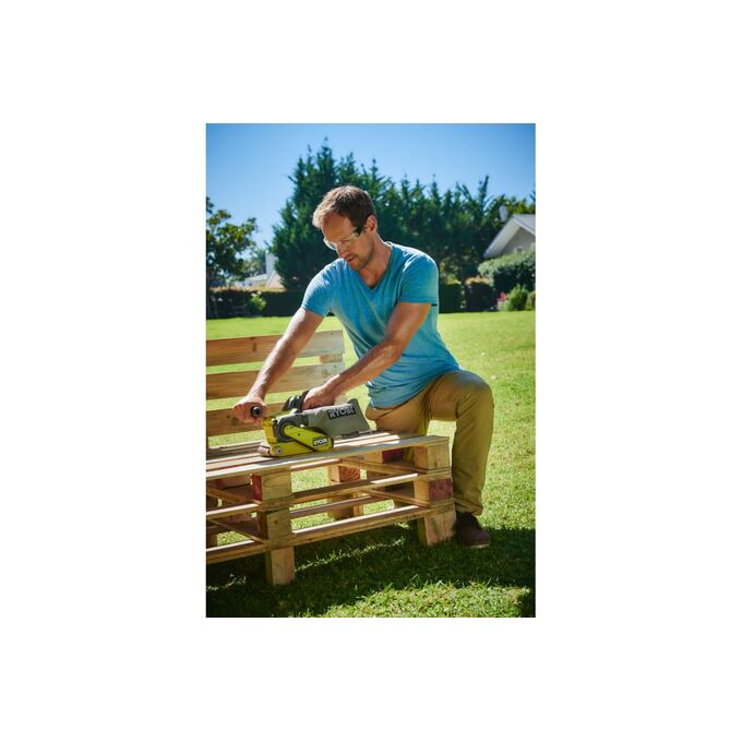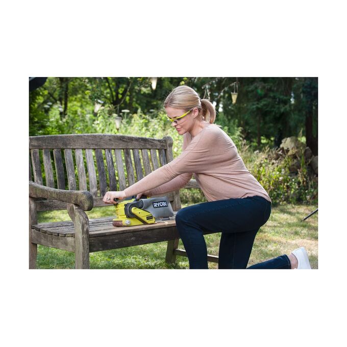 Ленточная шлифмашина Ryobi ONE+ R18BS-0 5133002916 предназначена для тяжелых работ по шлифованию больших поверхностей.
